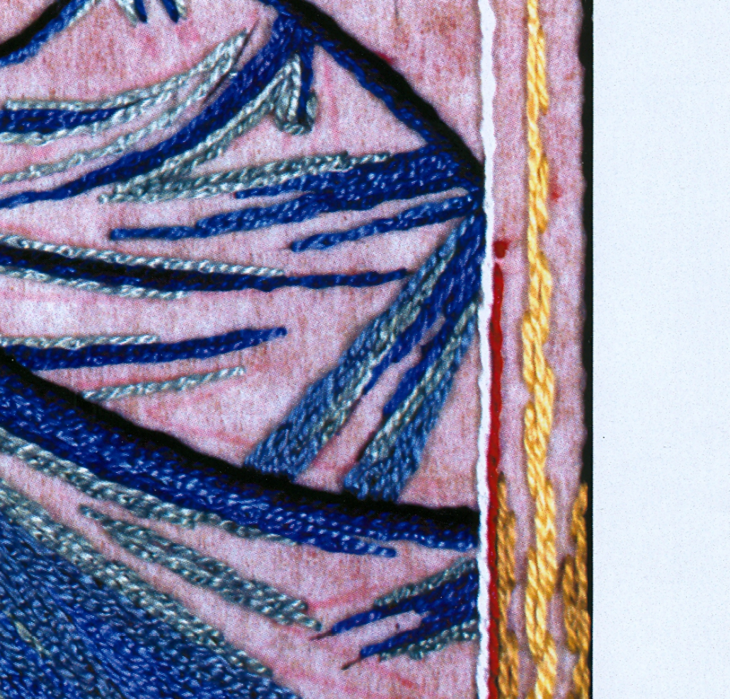 Mine... not so much. That's okay, since I can add extra stitching lines as needed, and Galina specifically says that this is a good spot to get a little "creatively sloppy" to blend the colors in the frame. It won't be a problem in the frame at all, but I will have to pay attention in future steps to make sure enough color is getting where it should be going.
