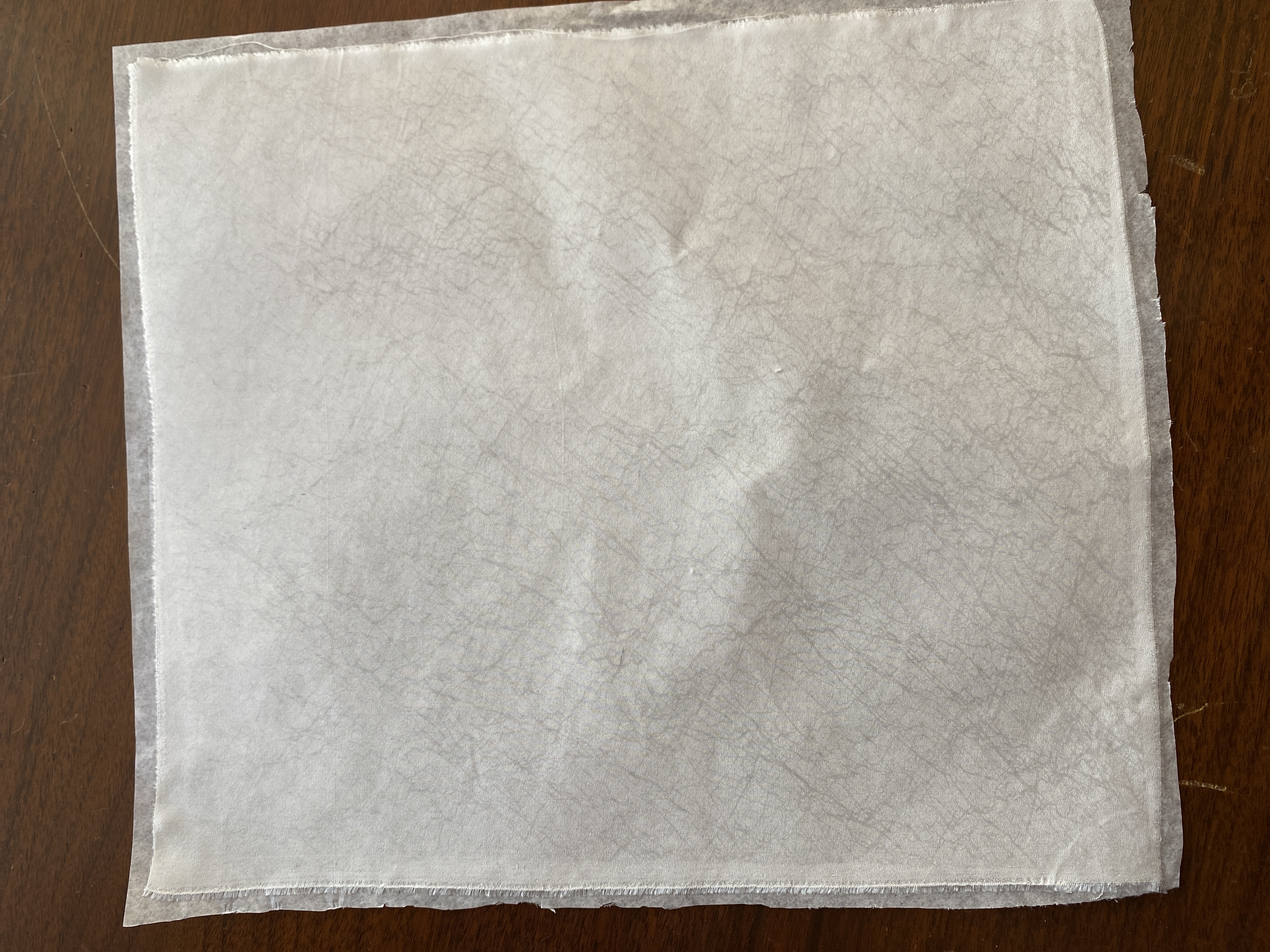 I've also used Mistyfuse fusible web to bond some white silk habotai to acid-free white tissue paper. I'll use this as the applique base for the lily itself.