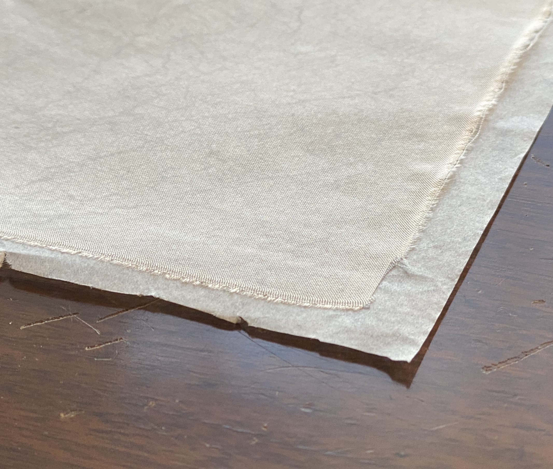 Both the Mistyfuse and the tissue should be archivally stable long term. (Should.) The surface looks webbed due to the texture of the Mistyfuse, probably because I should have been using the iron more like a squeegee. This might cause the edge of the applique to fray more than it ought, if some parts didn't get bonded; but I will try it, and it's simple enough to try again if needed.